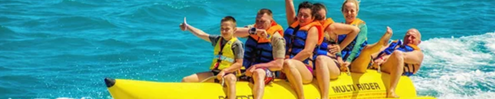 Description: Gather your friends and family for a fun ride on a banana boat. Pulled by a speedboat, this inflatable ride offers a fun and bumpy experience on the water, perfect for groups looking to share a laugh and some excitement.